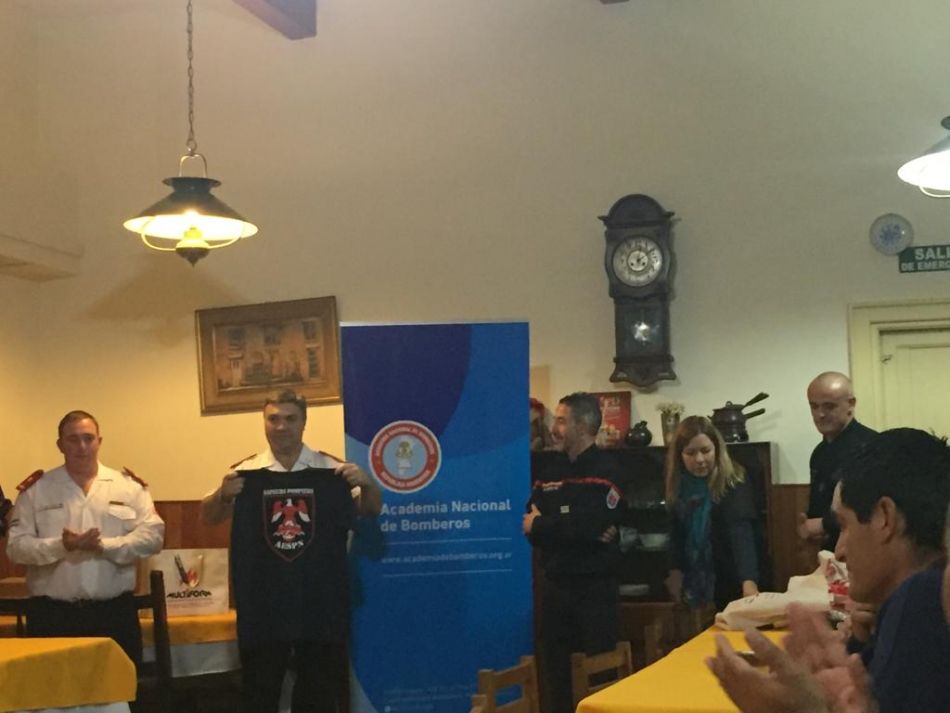 Lo acompañaron en esta instancia, el Coordinador de Estructuras Colapsadas de la ANB Cmdt. My. B.V. Gabriel Giménez y el Coordinador de nuestro Departamento Federativo USAR y Subcoordinador del Departamento Estructuras Colapsadas de la ANB, Sub Crio. B.V. Matías Caraglio, para hacer entrega de presentes y recordatorios entre nuestras Instituciones y sus pares de Francia.